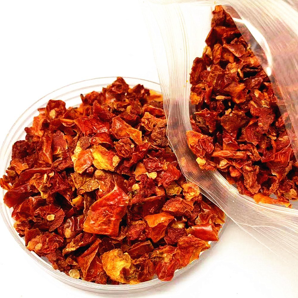Tomatoes (Solanum lycopersicum) originated in South America, particularly in modern-day Peru and Mexico, and were introduced to Europe in the 16th century. They quickly became a staple in culinary traditions worldwide due to their flavor, versatility, and nutritional value. To preserve tomatoes and make them more convenient for cooking, drying techniques were developed, leading to the creation of tomato flakes. These flakes retain the taste, color, and nutrients of fresh tomatoes while offering a long shelf life and ease of use. Today, tomato flakes are widely used in kitchens, food processing, and seasoning applications globally.
