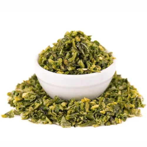 Green chili flakes are made by carefully drying and crushing fresh green chilies, preserving their natural heat, flavor, color, and nutrients. They provide a convenient, ready-to-use spice for enhancing the taste of pizzas, pasta, soups, sauces, curries, stir-fries, snacks, and seasoning blends. Rich in capsaicin, vitamins, minerals, and antioxidants, green chili flakes not only add natural spiciness but also support metabolism, digestion, immunity, and heart health. Their long shelf life, concentrated flavor, and versatility make them a popular choice in both home kitchens and commercial food production.