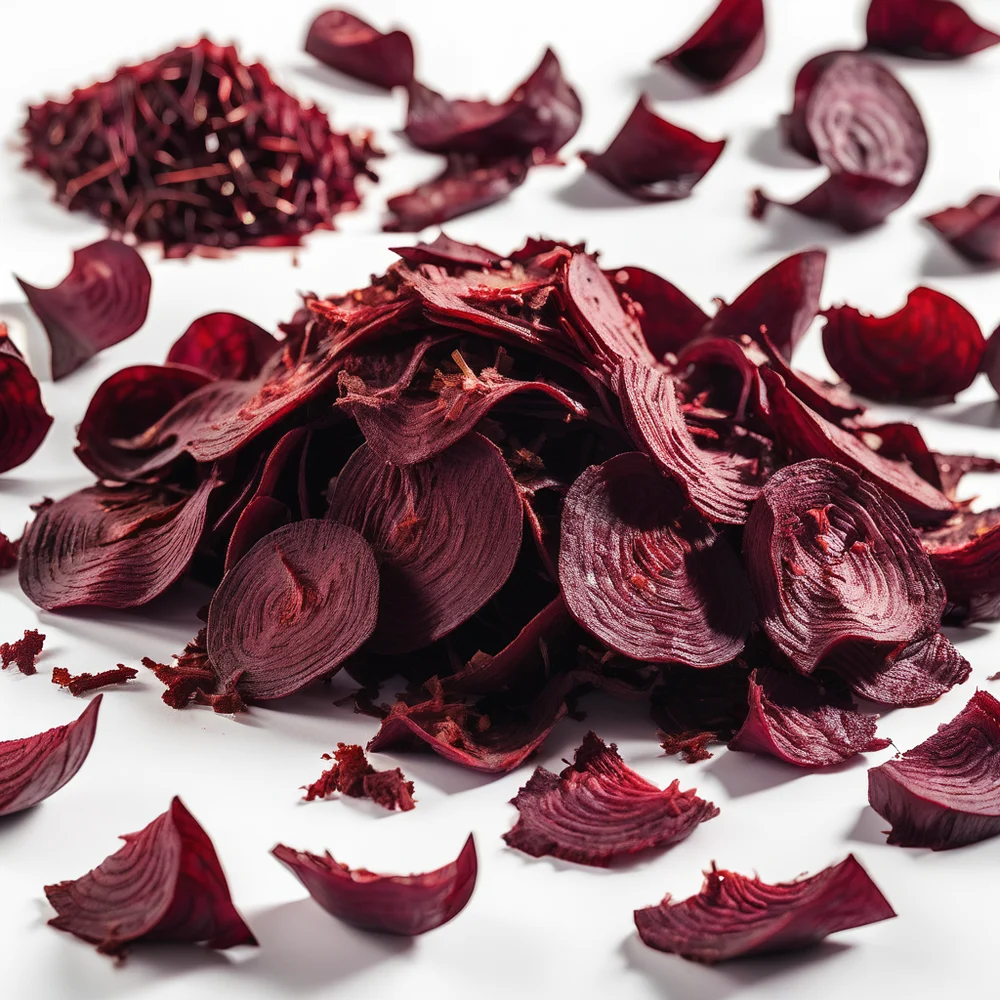 Beetroot Flakes are produced by dehydrating fresh beetroots to preserve their natural color, earthy flavor, and nutrient richness. They are a convenient, shelf-stable ingredient suitable for soups, stews, salads, smoothies, and snack formulations. Rich in dietary fiber, natural sugars, protein (8–10 g/100 g), and very low in fat (0.5–1 g/100 g), beetroot flakes are also packed with essential vitamins, minerals, nitrates, and antioxidants like betalains. These nutrients support heart health, stamina, immunity, and overall wellness while adding a vibrant red color to culinary creations.