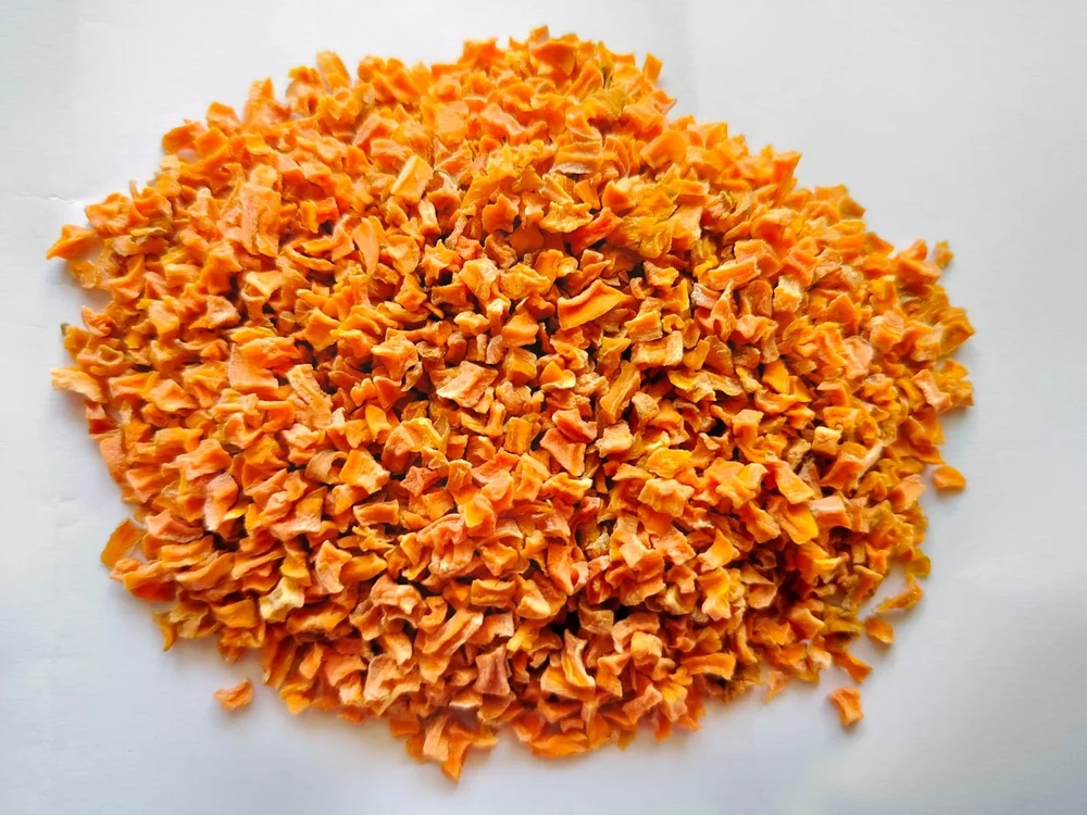 Carrot Cubes are made by carefully dehydrating fresh carrots into uniform cubes, preserving their natural color, flavor, and nutrients. They are convenient, shelf-stable, and ideal for soups, stews, sauces, snacks, and ready-to-cook meals, retaining the taste and nutrition of fresh carrots.
